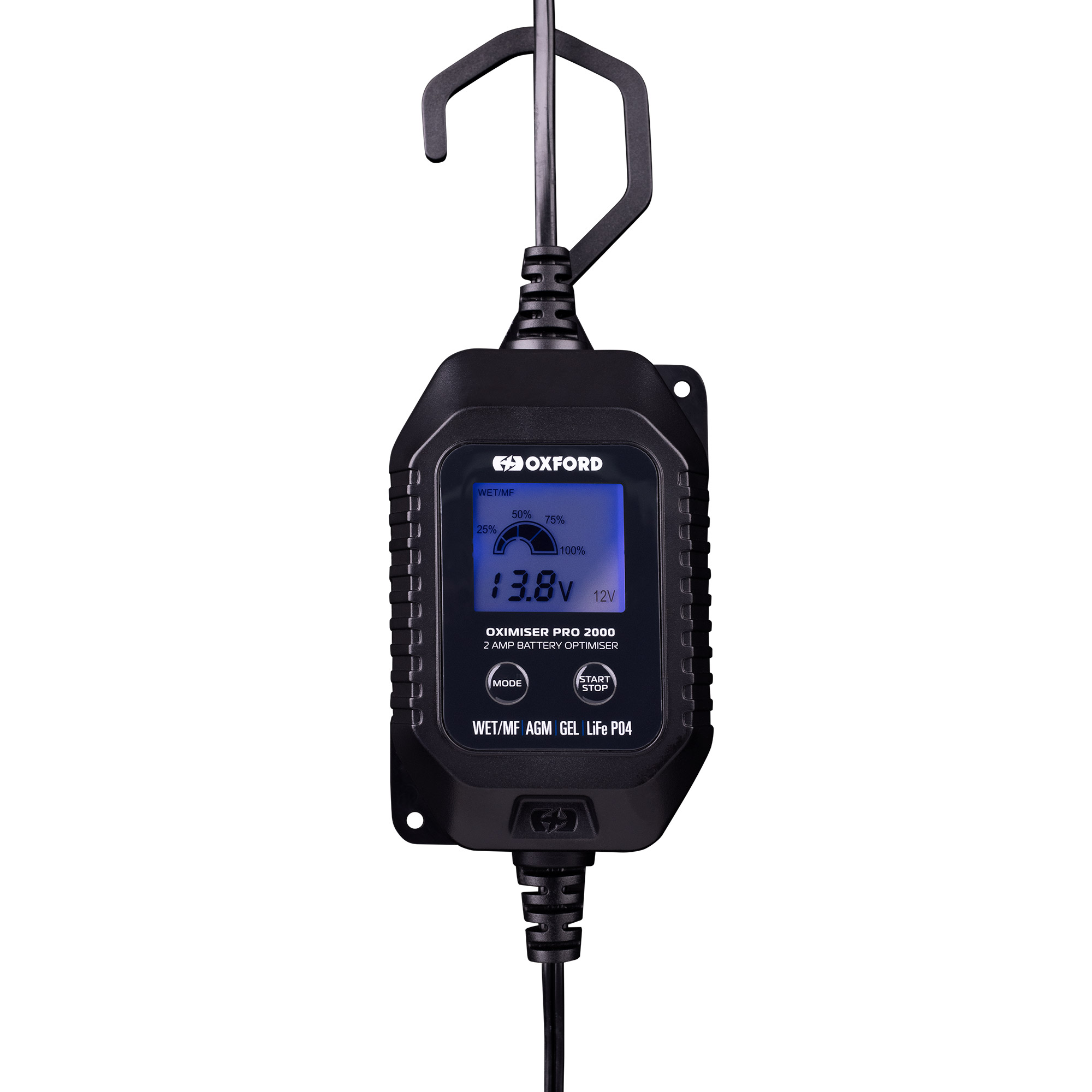 Met de Oxford 2000-Pro acculader heb je de perfecte oplossing in handen om de levensduur van de accu te verlengen en ervoor te zorgen dat uw scooter, motorfiets, ATV/Quad, auto`s, campers of boot altijd startklaar is